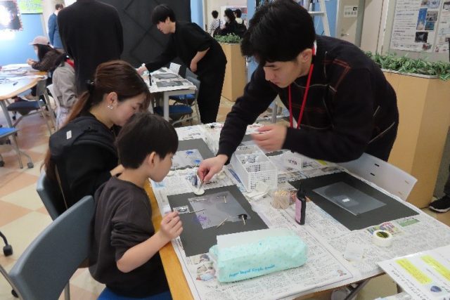 理工学域各学類の研究室・学生グループによる展示、実験体験コーナーなど、子どもから大人まで楽しめる30企画を行い、約1,069名が参加しました。