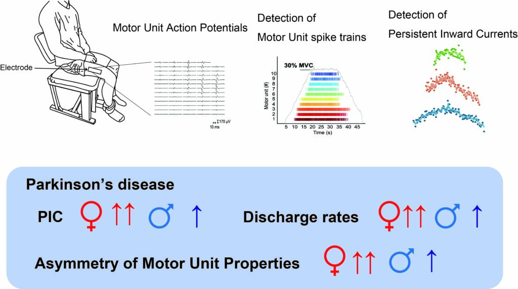 金沢大学理工研究域フロンティア工学系の西川裕一准教授、中京大学の渡邊航平教授、スロベニア・マリボル大学の Aleš Holobar 教授、MNES 株式会社の高橋哲也医師、広島大学の前田慶明准教授、丸山博文教授、アメリカ・マーケット大学の Allison Hyngstrom教授らの国際共同研究チームは、パーキンソン病患者において、性別によって運動単位(運動神経と筋線維の単位)の活動特性が異なることを、非侵襲的な高密度表面筋電図(HD-sEMG)(※1)解析により世界で初めて明らかにしました。