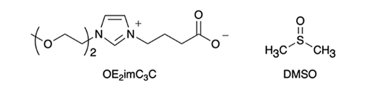 図1:OE₂imC₃C(黒田らのグループで開発)とDMSO(市販の低毒性有機溶媒)の化学構造